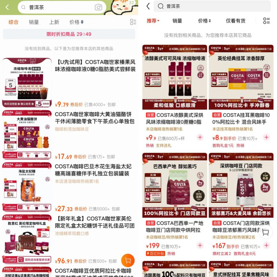 记者查询主流电商平台发现,天猫平台“COSTA官方旗舰店”和京东平台“COSTA咖啡京东自营旗舰店”均未销售相关普洱茶产品。此外,市场上如大益、八马茶业等知名品牌所售普洱茶,普遍仅标注“在通风、阴凉、干燥、无异味无污染的环境下长期保存”,并未设定具体固定年限。