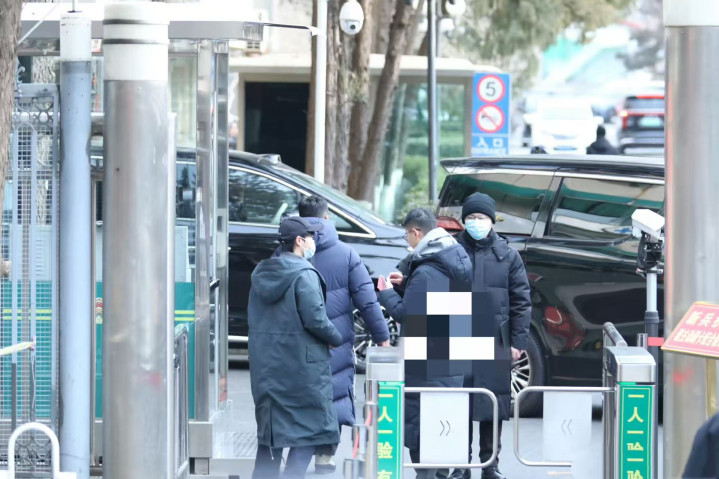 俩人都十分低调,身旁也只跟着几名工作人员,穿着休闲,脚步匆匆地直奔大楼内部。