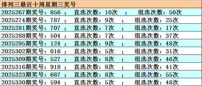开奖回顾:排列三2025336期开奖:412,组六,和值7,跨度3,奇偶比1:2,大小比0:3。