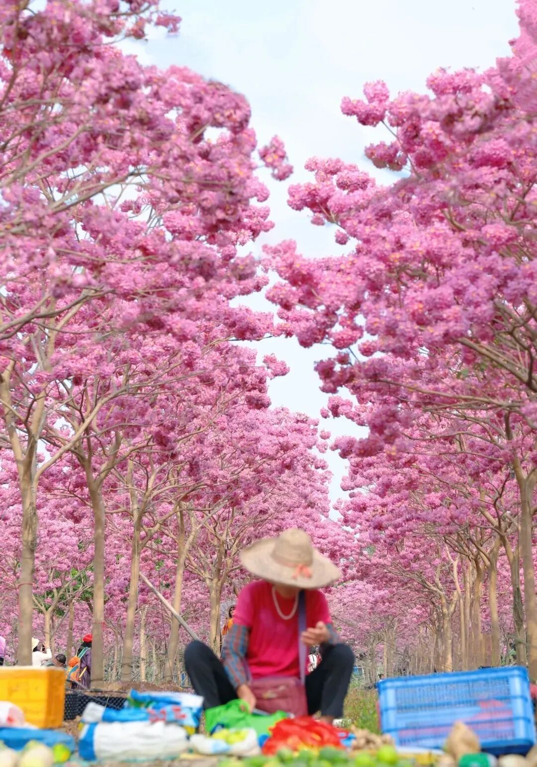 ② 穿浅色衣服,避免全身粉色系,防止和花海撞色,草帽、透明伞当道具更出片